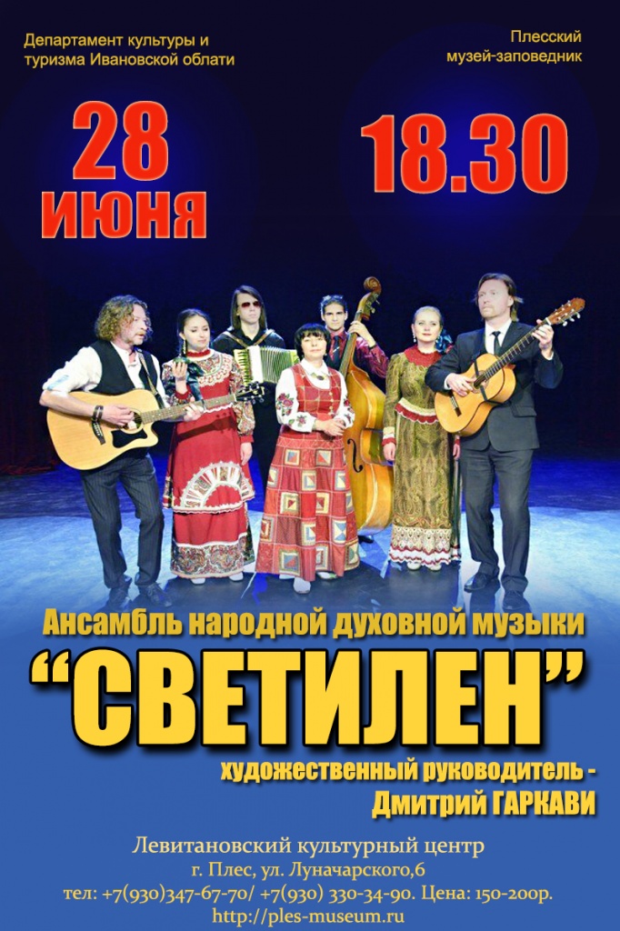 28 июня 2017 года в 18:30 в Левитановский культурный центр (г. Плёс, Луначарского, 6) прошла экспериментальная программа ансамбля народной духовной музыки "Светилен".
