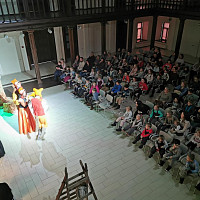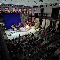 Яркий, красочный спектакль сопровождает музыка европейских композиторов в исполнении Камерного оркестра и Академического камерного хора Государственной филармонии Костромской области (художественный руководитель и дирижер - заслуженный артист Костромской области Алексей Мельков).