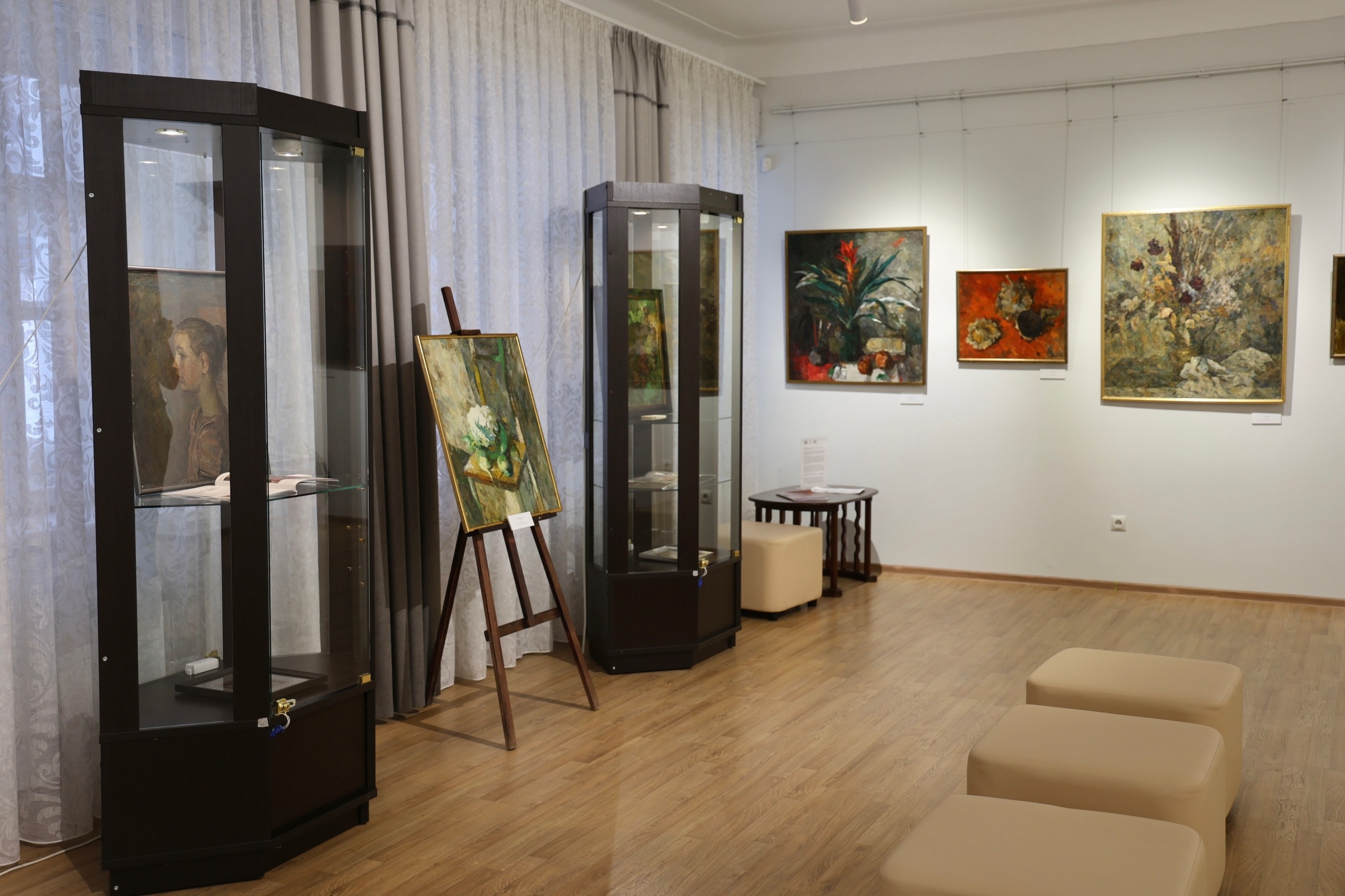 «Живопись - это не иллюзорное списывание, не копирование, а создание собственного драгоценного красочного мира на основе натуры», - высказывание Раисы Лебедевой идеально отражает живописное наполнение экспозиции. На выставке в Плёсе представлено около 60 работ – в основном пейзажи и натюрморты, именно в этих жанрах художник чувствовала себя наиболее свободной. Творчество Раисы Ивановны отличает умение видеть красоту даже в таких простых вещах, как листьях ревеня или в швейной машинке. Каждая картина наполнена яркими красками, всё здесь живет своей собственной неповторимой жизнью.