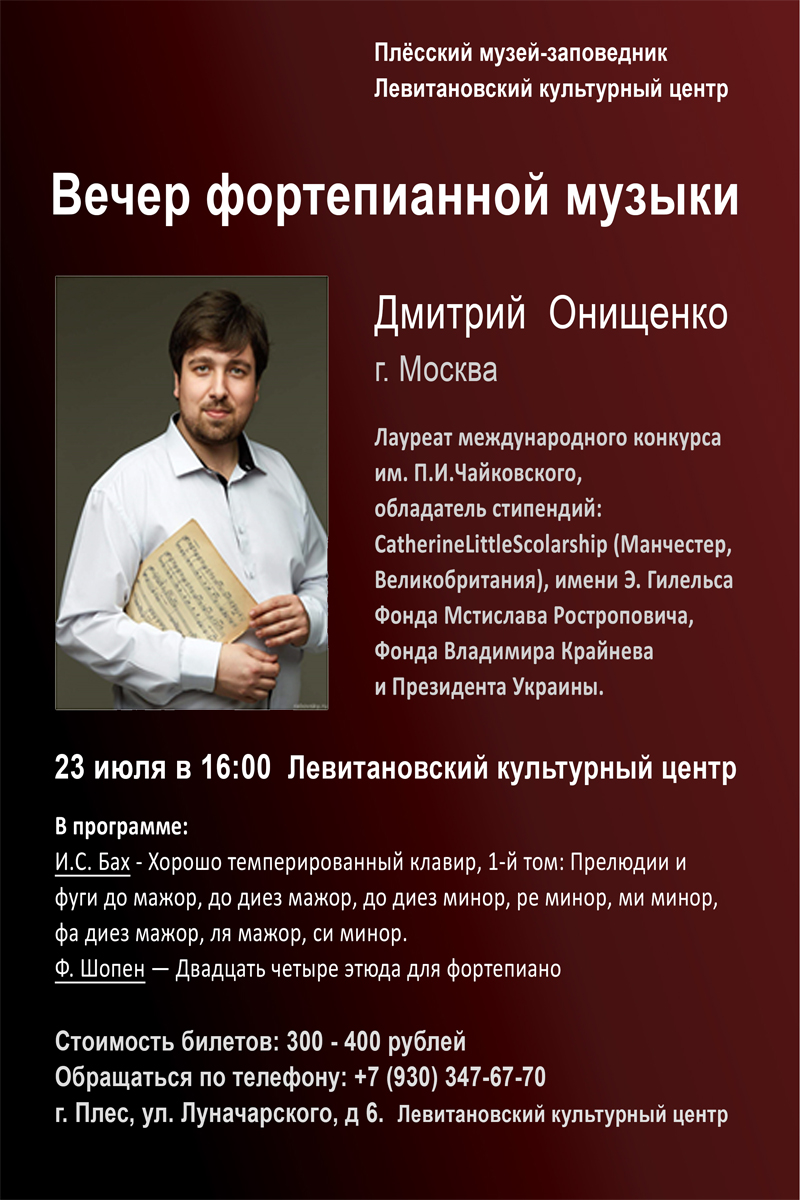 Вечер фортепианной музыки. ДМИТРИЙ ОНИЩЕНКО (г.Москва)