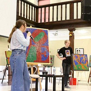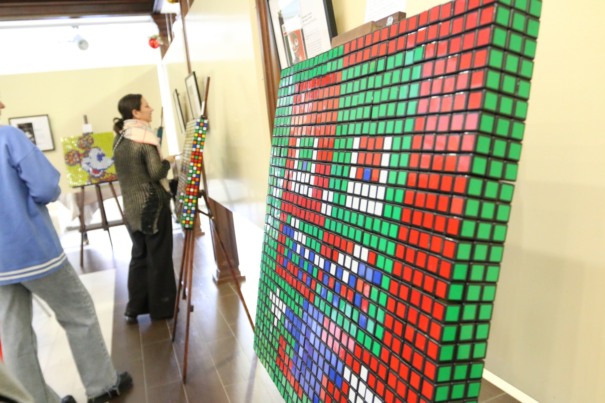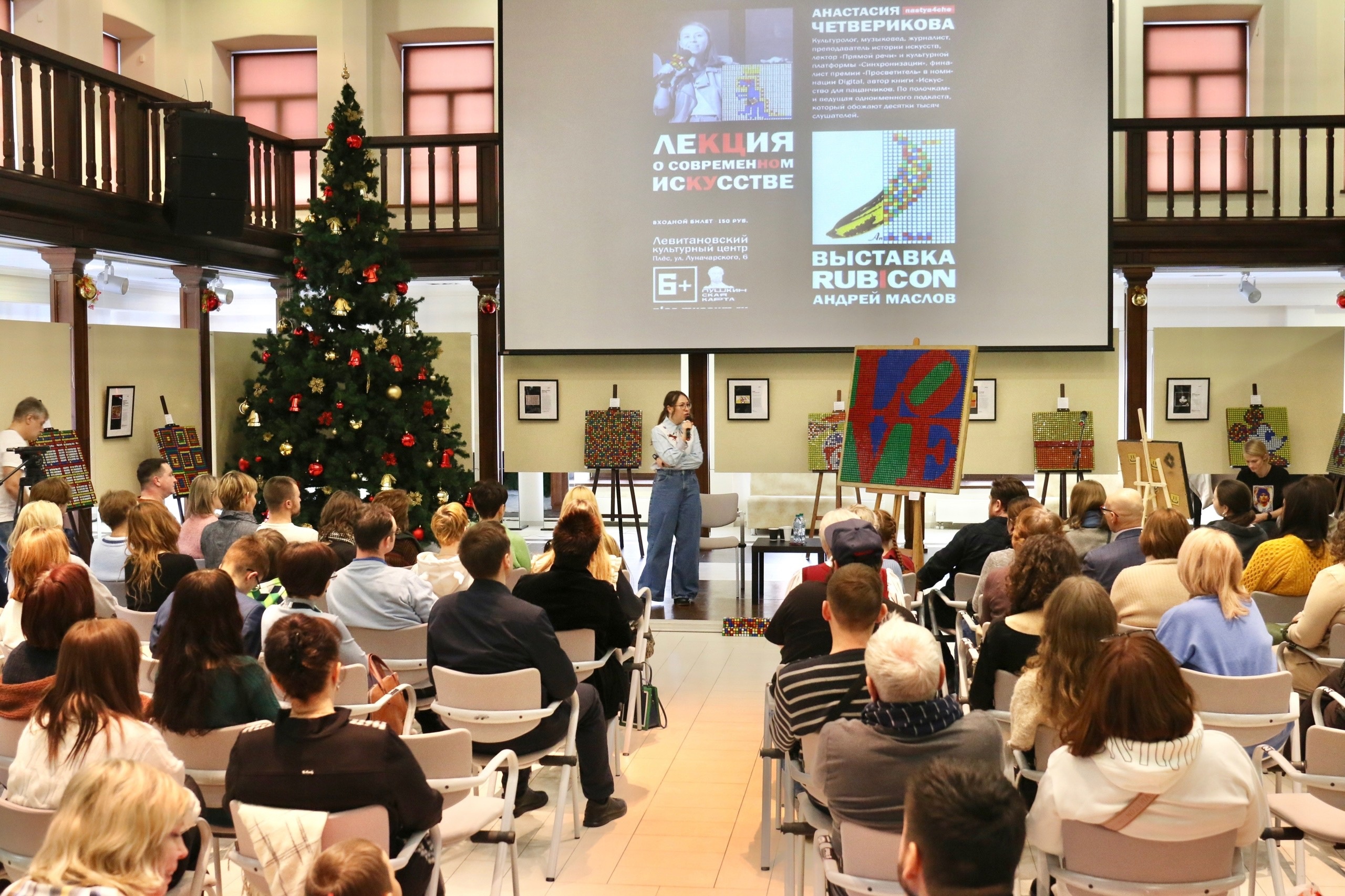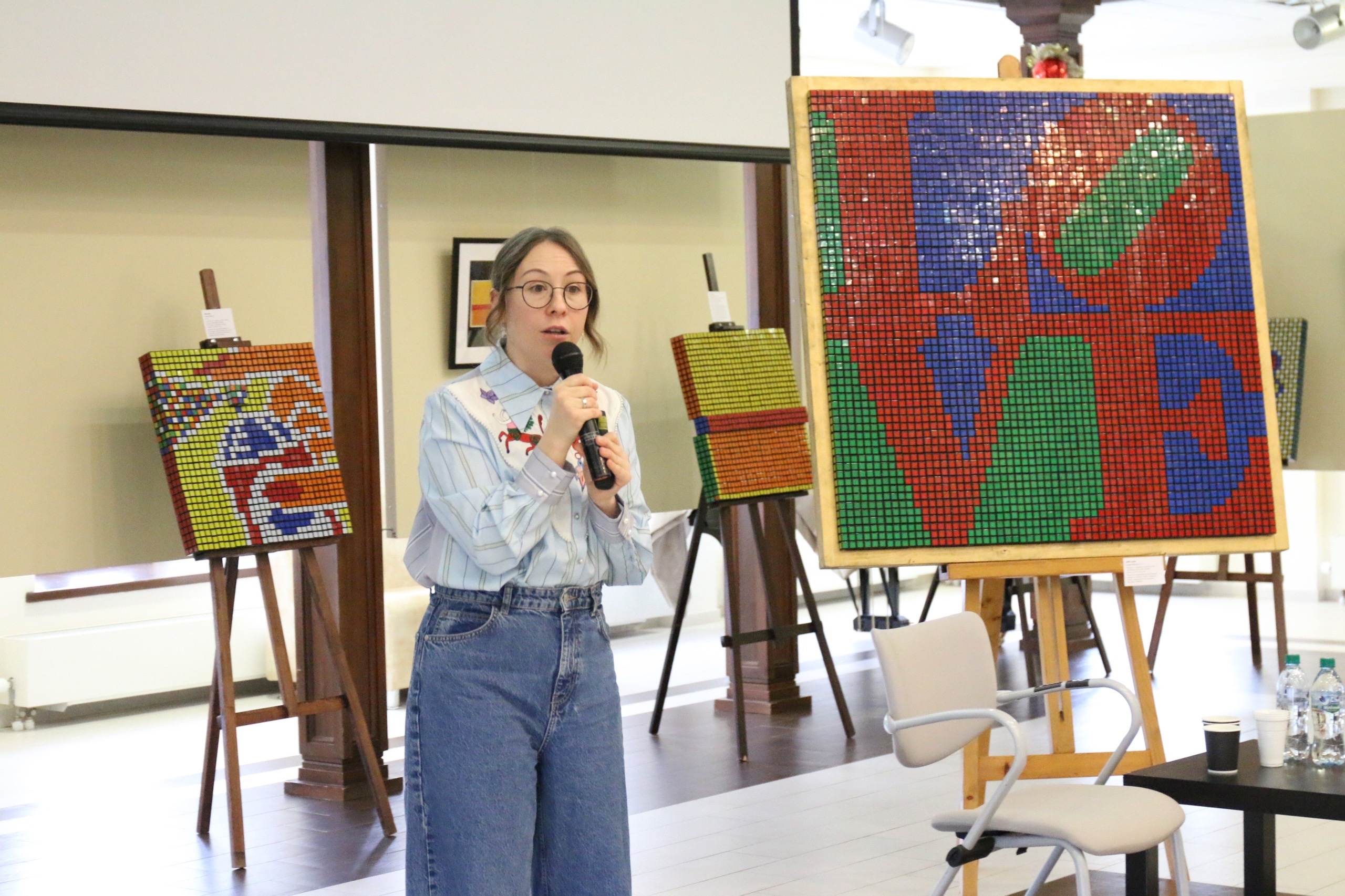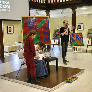 Место и время проведения выбраны не случайно. С 16 декабря в Левитановском культурном центре работает выставка концептуальных мозаик из кубиков Рубика «RUBICON» дизайнера головоломок, спидкубера и рубиккубиста Андрея Маслова. Проект погружает посетителей в художественный мир авангарда, поп-арта и современного искусства. Работая с известными изображениями Уорхола, Малевича, Кандинского, Лихтенштейна и Мураками, Андрей наделяет их новыми свойствами, превращая круги в квадраты, точки – в пиксели, монохром – в цветовой хаос. Автор иронизирует над мировыми шедеврами, вращая грани кубика Рубика, и открывает для зрителя новые грани культовых образов.