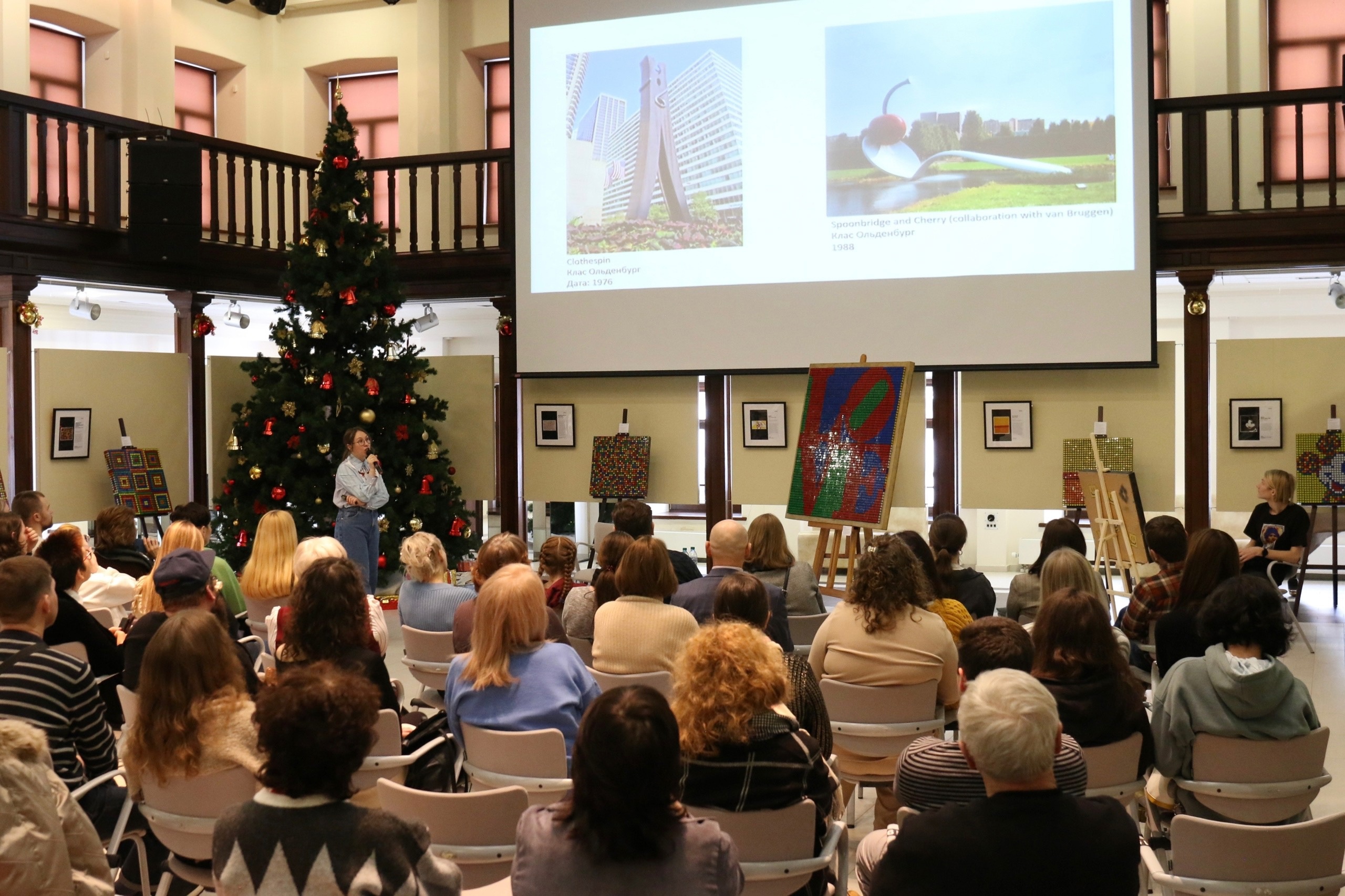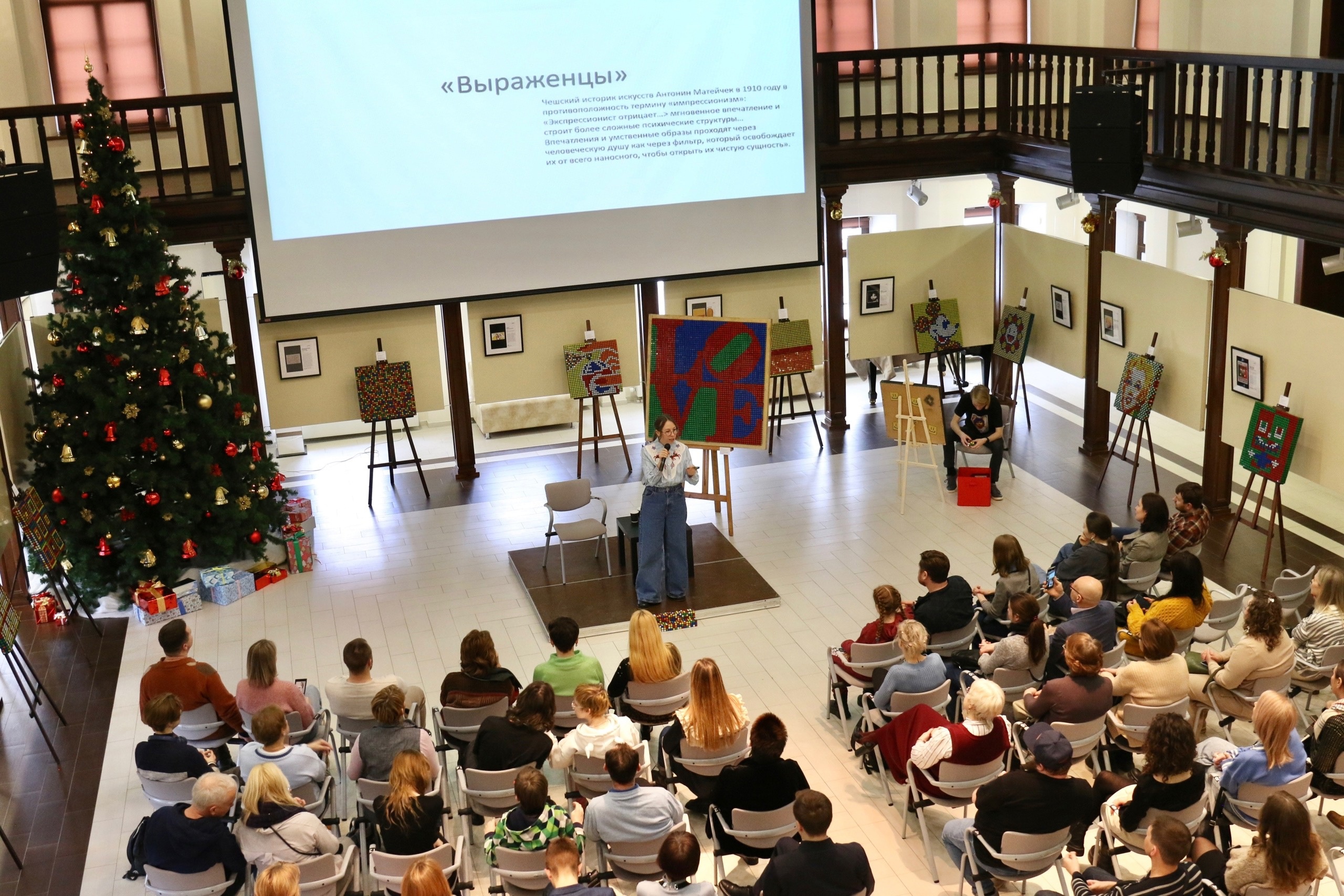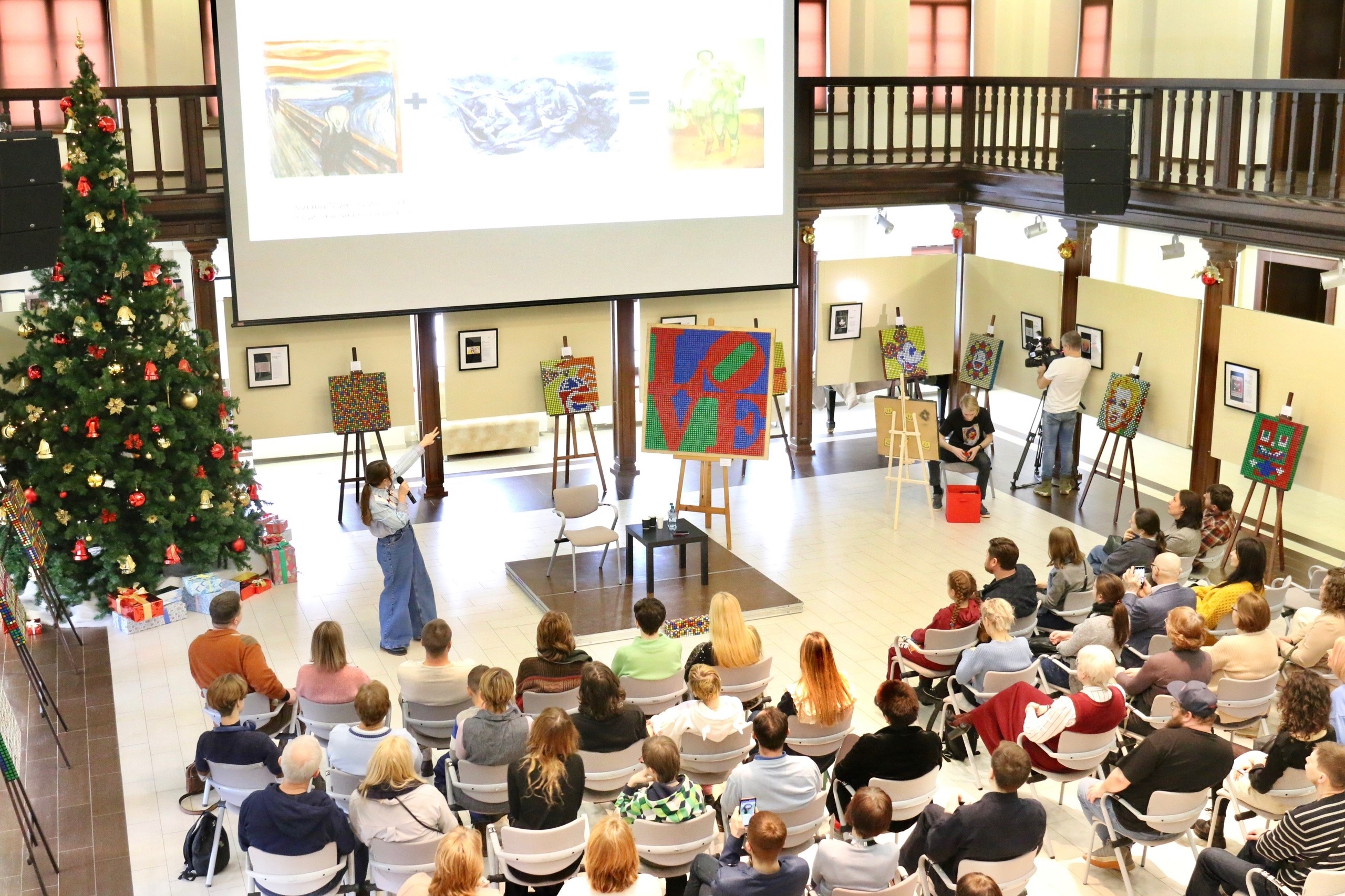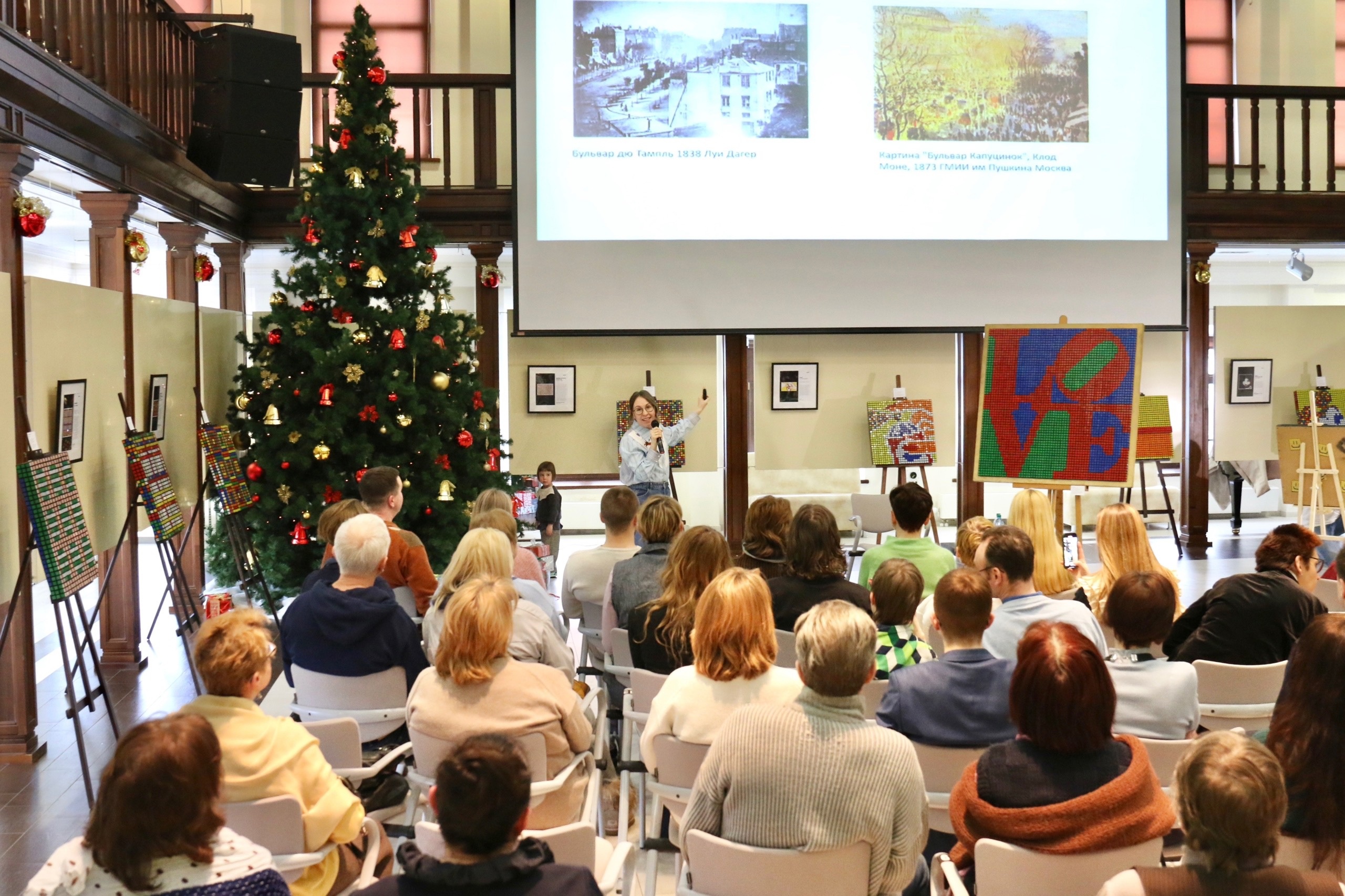 Место и время проведения выбраны не случайно. С 16 декабря в Левитановском культурном центре работает выставка концептуальных мозаик из кубиков Рубика «RUBICON» дизайнера головоломок, спидкубера и рубиккубиста Андрея Маслова. Проект погружает посетителей в художественный мир авангарда, поп-арта и современного искусства. Работая с известными изображениями Уорхола, Малевича, Кандинского, Лихтенштейна и Мураками, Андрей наделяет их новыми свойствами, превращая круги в квадраты, точки – в пиксели, монохром – в цветовой хаос. Автор иронизирует над мировыми шедеврами, вращая грани кубика Рубика, и открывает для зрителя новые грани культовых образов.