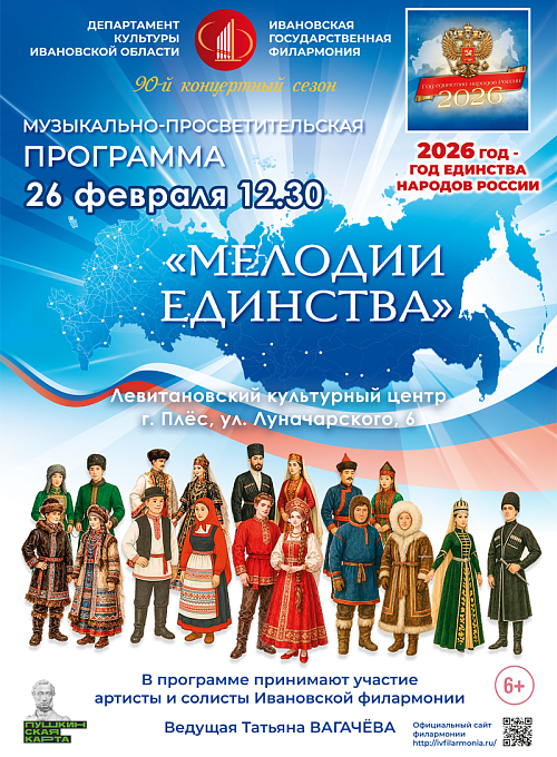26 февраля 2026 г. в 12.30 Ивановская государственная филармония представит в Левитановском культурном центре г. Плёса новую...