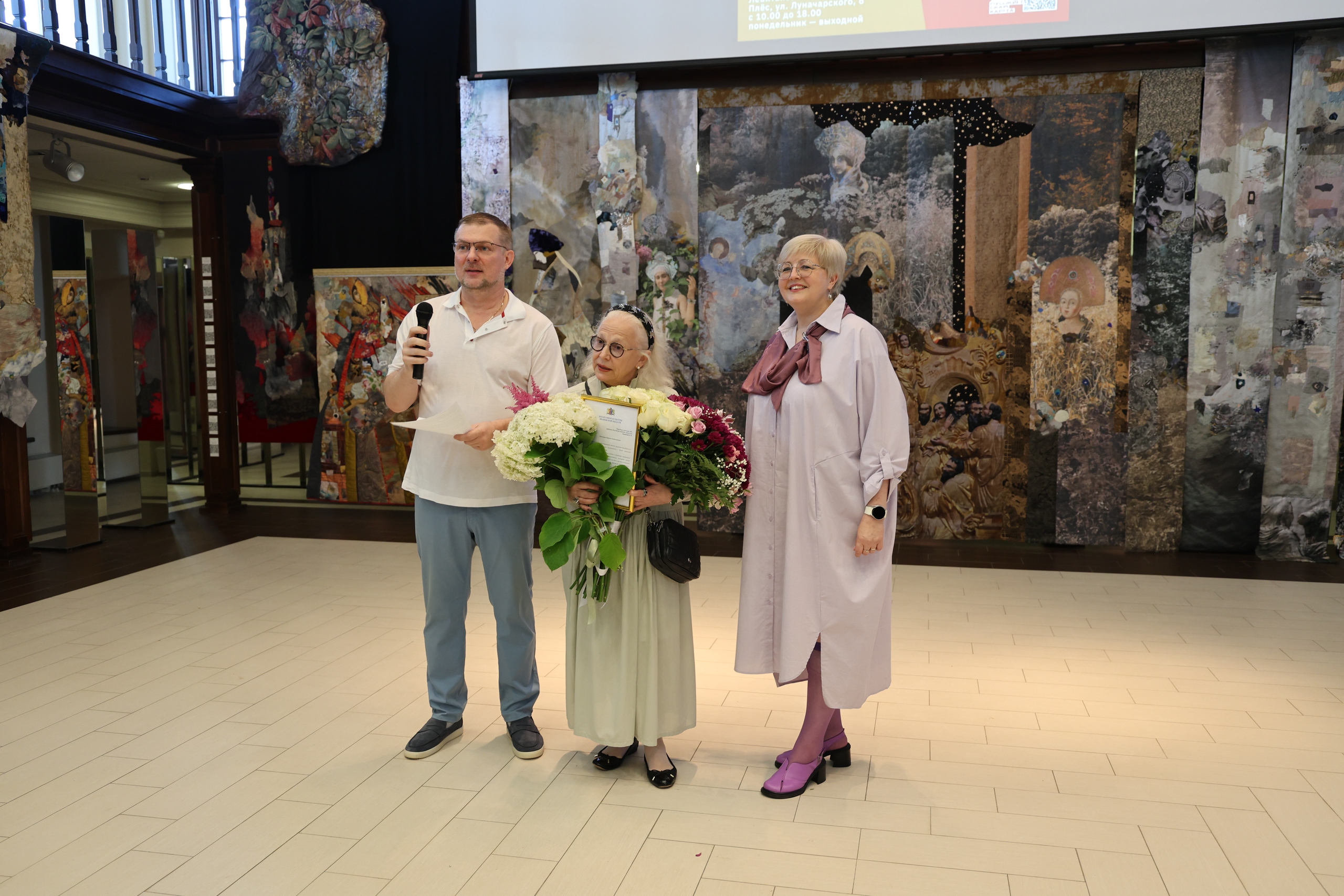 25 июля 2025 г. в 17.00 в Левитановском культурном центре г. Плёса состоится торжественное открытие персональной выставки мастера художественного текстиля, народного художника РФ, академика Российской академии художеств Натальи Мурадовой. Проект подготовлен в сотрудничестве с московской галереей Marchand Gallery, резидентом и другом которой является Наталья Владимировна. Зрителям будут представлены оригинальные текстильные панно, включающие в свою композицию арт-объекты, созданные автором в других видах искусства: графике, живописи, фотографии, росписи по ткани, в области текстильного дизайна. Органично вписанные в текстильное окружение, они не только дополняют художественное произведение, но и акцентируют его смыслы.