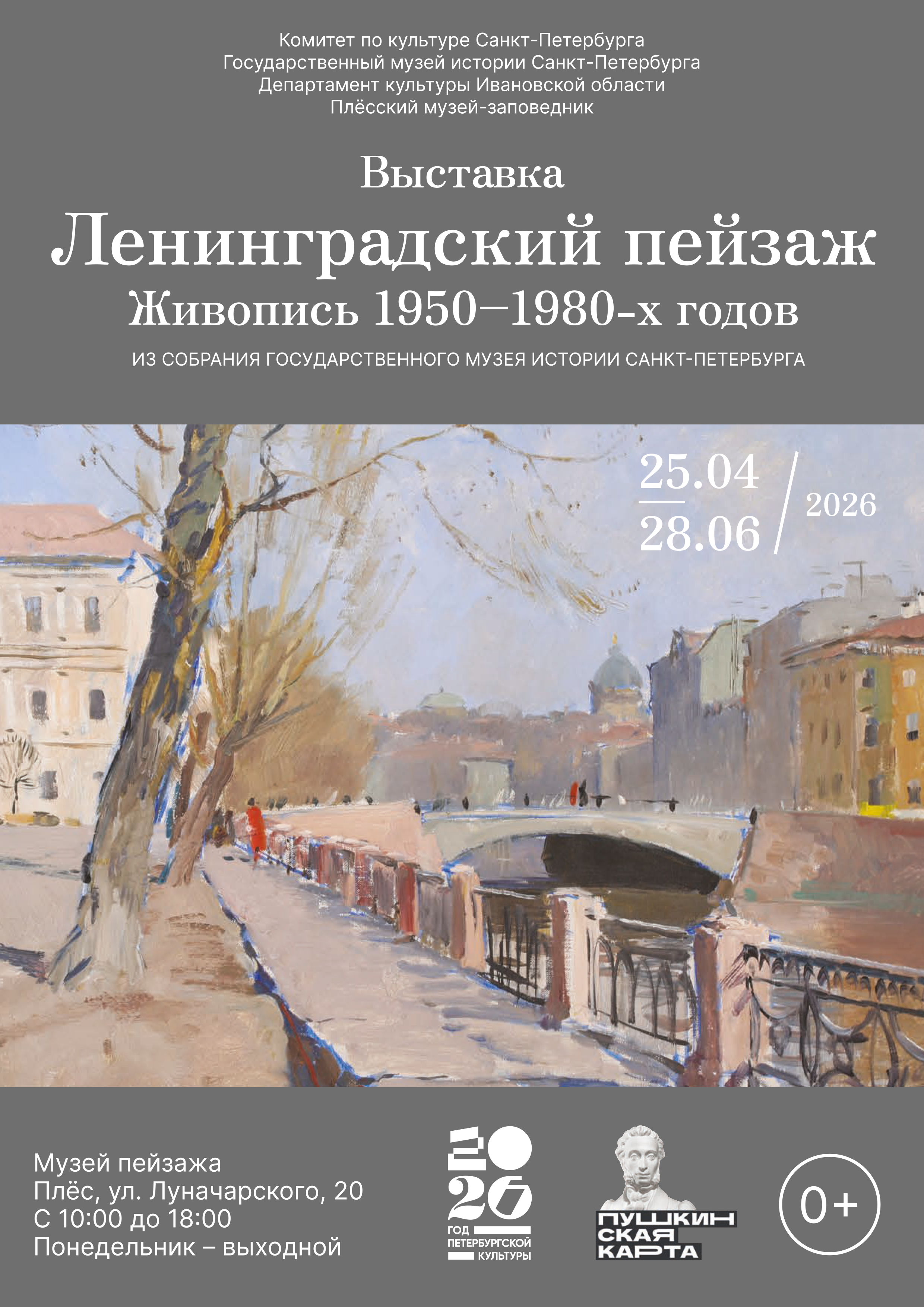 25 апреля 2026 г. в Музее пейзажа Плёсского музея-заповедника начнёт работу выставка из собрания Государственного музея истории Санкт-Петербурга «Ленинградский пейзаж. Живопись 1950-1980-х годов».