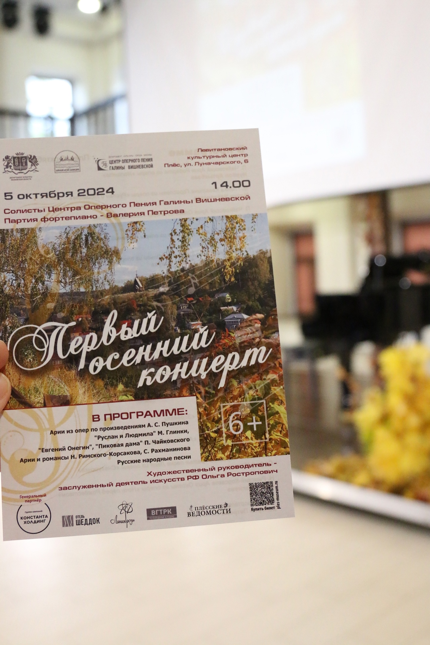 5 октября 2024 г. в 14.00 в Левитановском культурном центре г. Плёса состоится концерт солистов Центра Оперного Пения Галины Вишневской (Москва).