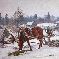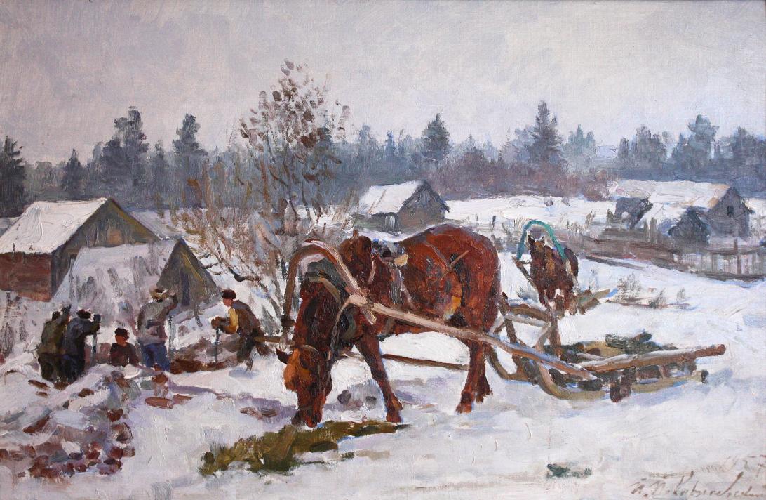 Картина «Стадо пригнали» (1942) находится в собрании семьи художника. В ней замечательно передано состояние природы. В прозрачном воздухе рождаются сумерки, роняя повсюду перламутровые полутени. Живопись необычайно свежа, пластический образ целостен. Выразителен ритмический строй ландшафта и движущегося стада.