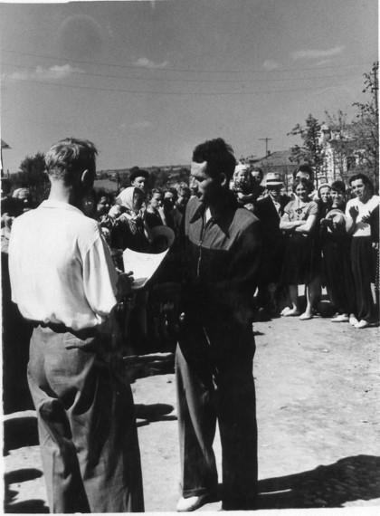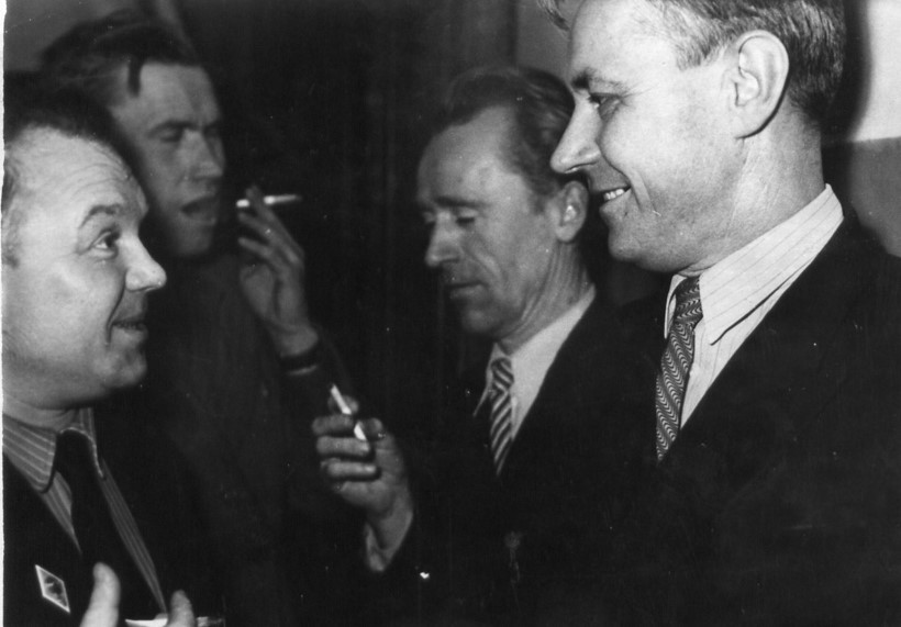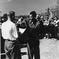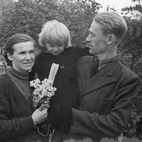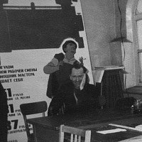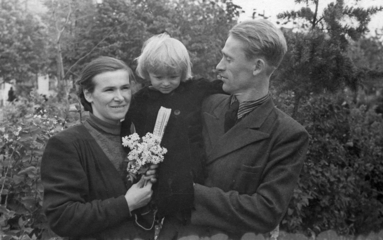 Демобилизован в запас он был 6 декабря 1945 г. в звании рядового. Домой Виктор Александрович вернулся лишь в канун нового 1946 г. В феврале 1946 г. он был призван на работу в Фурмановский ГК ВЛКСМ заведующим учётом. Тогда же, на комсомольской работе, познакомился с будущей женой, Елизаветой Фёдоровной Носковой, которая была секретарём комитета комсомола фабрики № 1. «Работал Виктор самоотверженно, - рассказывала позднее наша мама, - копался в архиве, связался с паспортным столом, отыскал всех комсомольцев города, организовал работу: то - по заготовке дров, то - посадке деревьев… Много было всяких дел после войны»… В октябре 1946-го его назначили 2-ым секретарём РК ВЛКСМ. А 23 мая 1947 г. у Виктора и Лизы родилась дочь Надежда. В этом же году Виктор Александрович был командирован на учёбу в Ленинградскую Областную партийную школу (сентябрь 1947 - август 1949 гг.). Это было очное обучение. Целый год Виктор жил там один, наконец, написал жене короткое письмо: «Лиза, приезжай»! Она оставила дочку у бабушки с дедом и отправилась к мужу в Ленинград. Устроилась там работать мастером на прядильную фабрику «Возрождение». Родители мужа поддержали решение молодой семьи. «Они оба были такие добрые! Я их очень любила», - говорила мама. Сохранилась фотография, где маленькая Надя сидит на руках у бабушки Анны, с письмом на обороте: «Витя, Лиза, прошу вас, не скучайте по Наде, она очень растёт хорошо, много стала говорить».