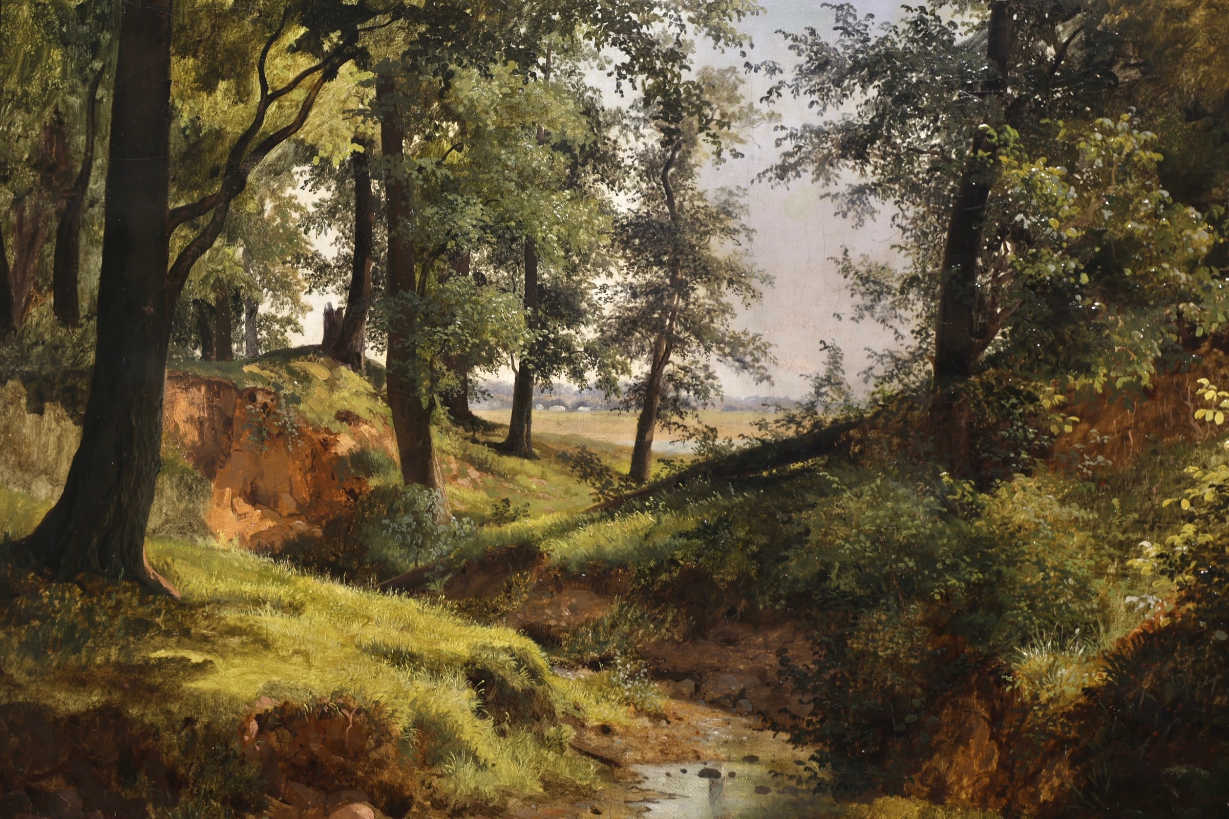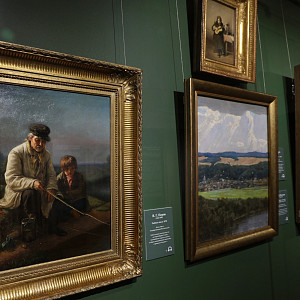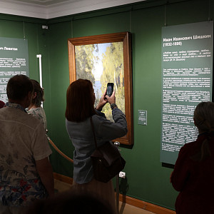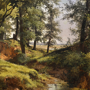 Говоря о развитии реалистической пейзажной живописи в России, необходимо начать с имени Ивана Ивановича Шишкина - одного из крупнейших мастеров этого жанра, получившего признание ещё при жизни и снискавшего поистине всенародную любовь. Его картина «У берегов Финского залива. (Удриас близ Нарвы)» (1889) является прекрасным дополнением экспонируемого собрания.