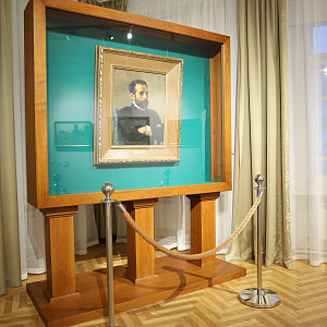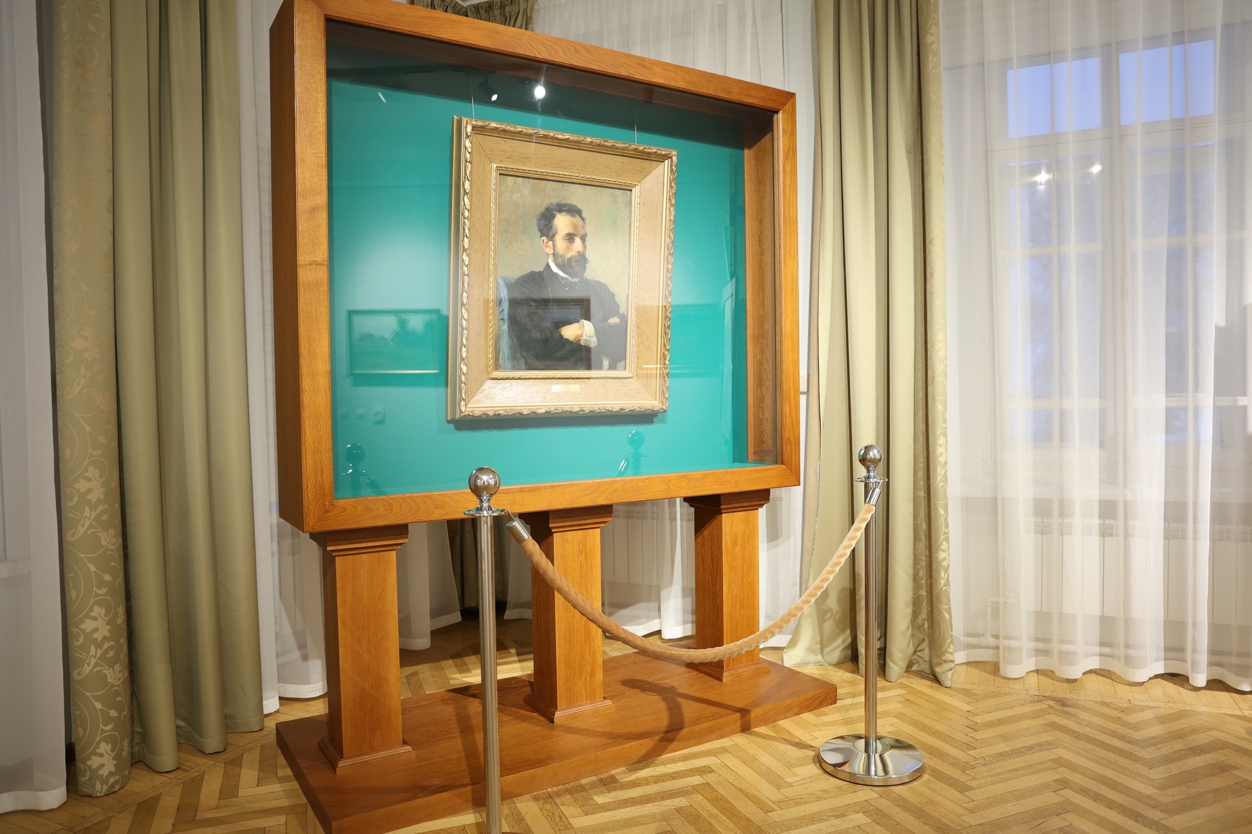 Отдельное место в специальной витрине занимает известный портрет Левитана кисти Поленова. Василий Дмитриевич несколько раз просил пейзажиста позировать ему, в том числе и для фигуры Христа. Черты лица Исаака Ильича многие художники считали на редкость гармоничными и восхитительно благородными.