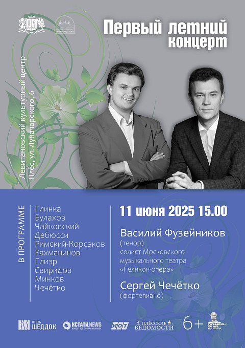 11 июня 2025 г. в 15.00 в Левитановском культурном центре города Плёса состоится «Первый летний концерт», приуроченный к открытию выставки «Исаак Левитан и его наставники» из собрания Государственного Русского музея.