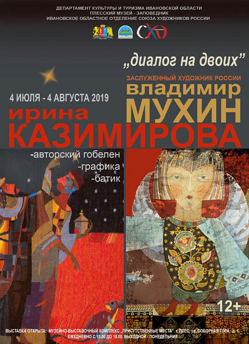 4 июля 2019 г. в 16.00 в Музейно-выставочном комплексе «Присутственные места» состоится открытие выставки «Диалог на двоих». Огромное количество туристов, посещающих во время волжской навигации Плес, искренне восхищаются произведениями мастеров декоративно-прикладного искусства Ивановской области, представленными в основной экспозиции Плесского музея-заповедника на набережной, но мало знакомы с творчеством наших замечательных художников-современников. Теперь мы имеем возможность пригласить зрителей по достоинству оценить уровень развития этого вида искусства в Ивановской области на примере произведений его лучших представителей.