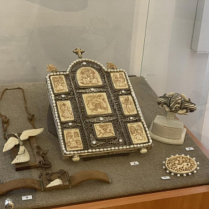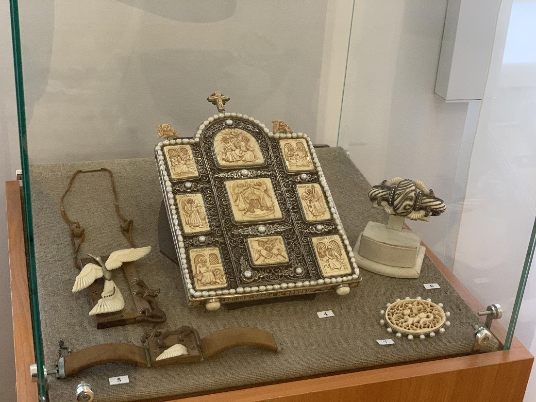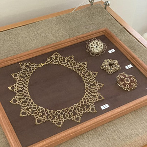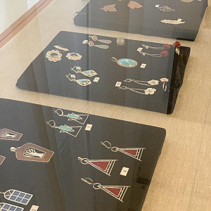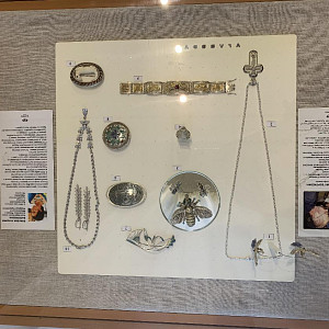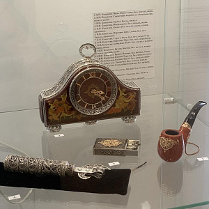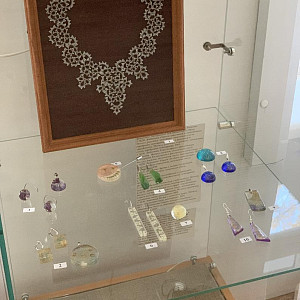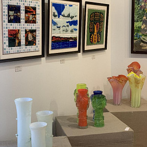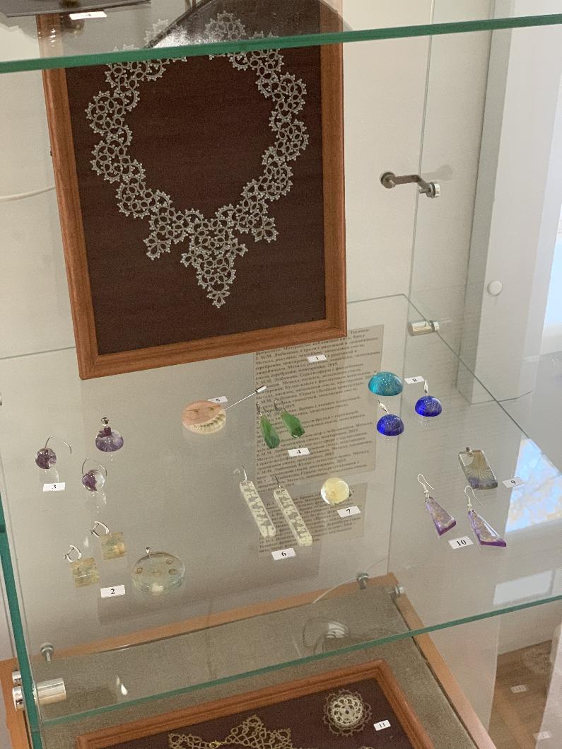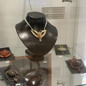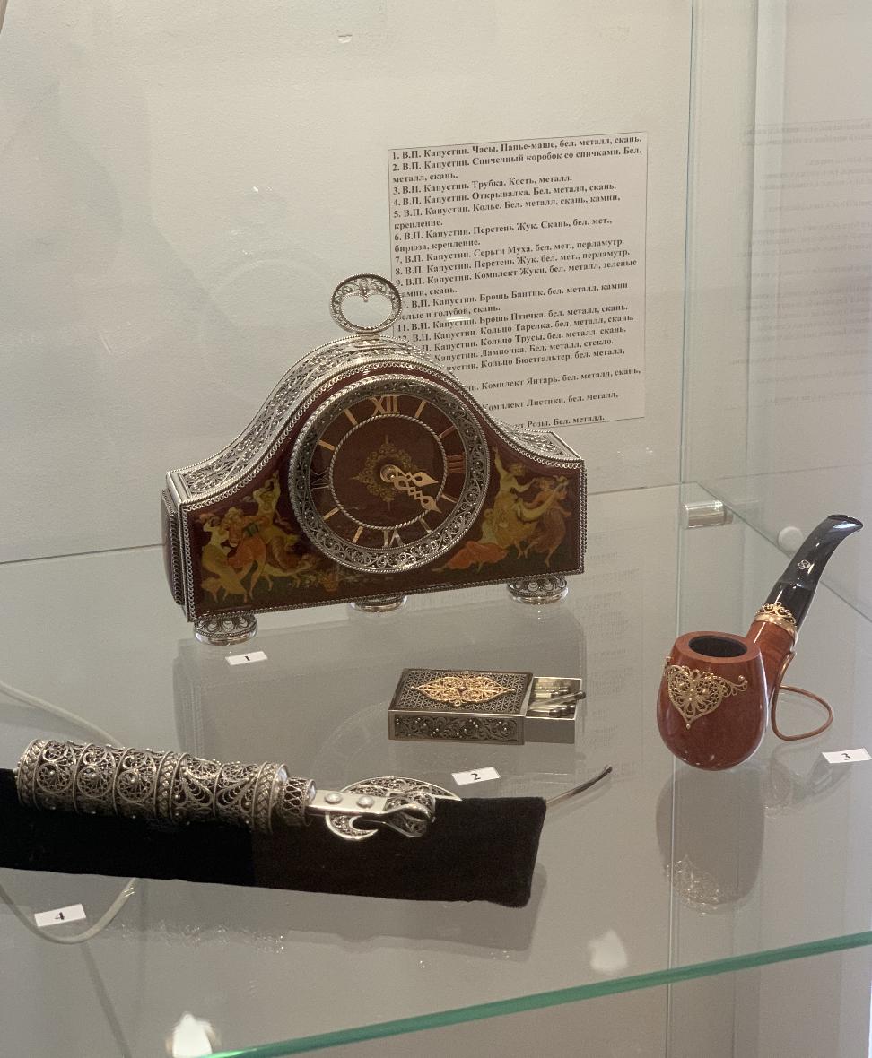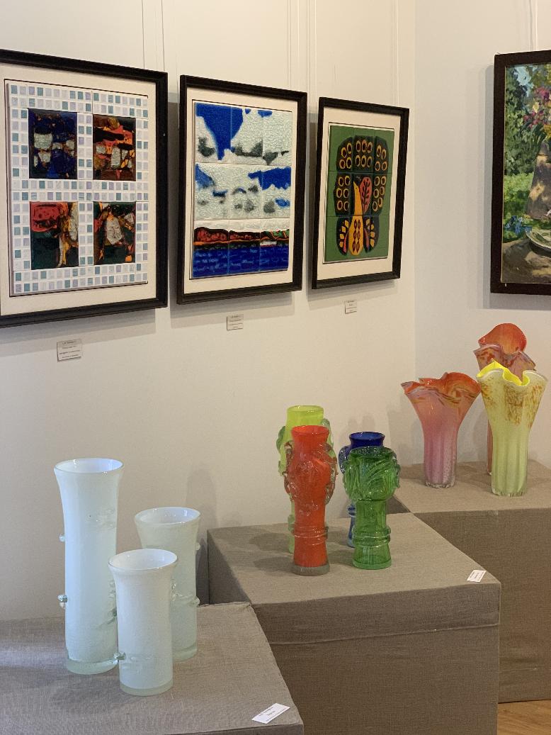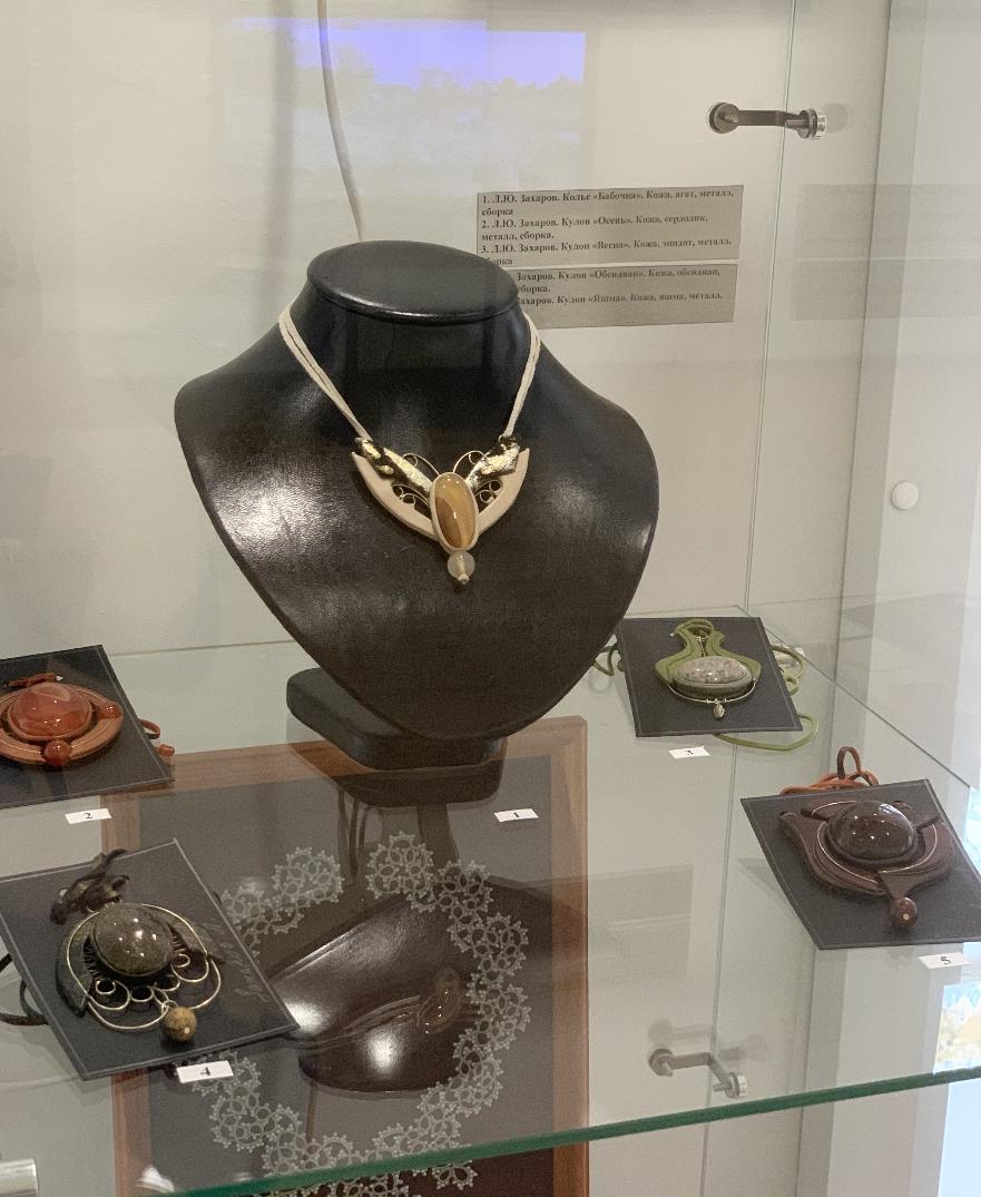 На этой выставке, кроме живописи и графики, традиционно представлено декоративно-прикладное искусство: ювелирные изделия, изделия из кожи и природных материалов, стекло, керамика.