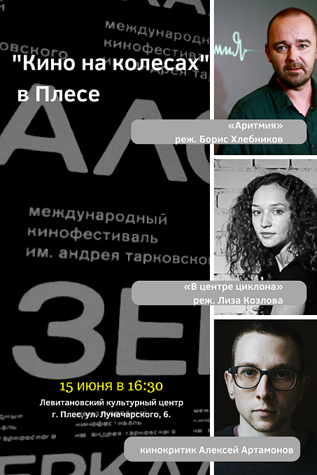 15 июня 2018 г. в 16:30 в Левитановском культурном центре в рамках XII Международного кинофестиваля им. Андрея Тарковского "Зеркало" состоится показ двух фильмов: «В центре циклона» и «Аритмия». Приглашаем жителей и гостей города. Вход свободный.