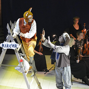 Яркий, красочный спектакль сопровождает музыка европейских композиторов в исполнении Камерного оркестра и Академического камерного хора Государственной филармонии Костромской области (художественный руководитель и дирижер - заслуженный артист Костромской области Алексей Мельков).