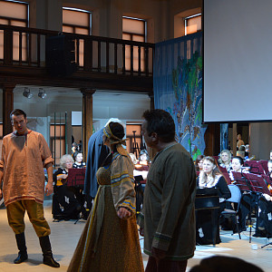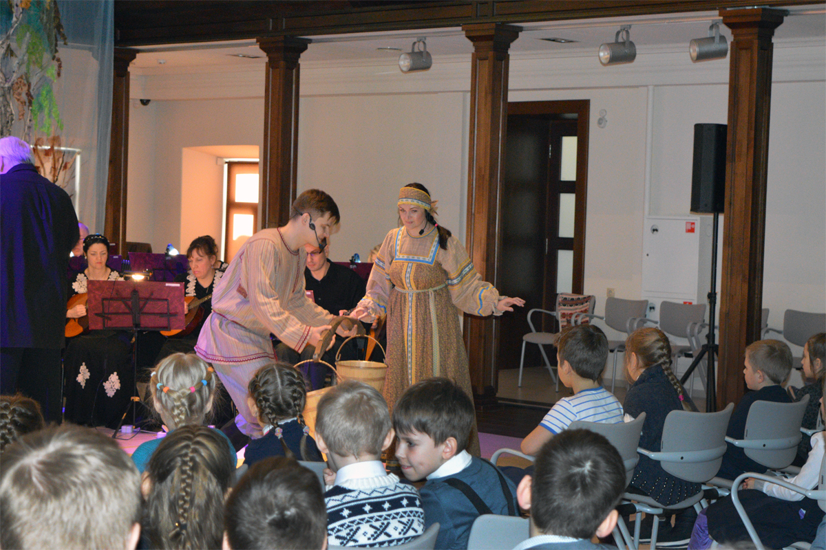 Знакомство со сказкой по традиции сопровождается музыкальными иллюстрациями в исполнении Костромского государственного оркестра народных инструментов (художественный руководитель и главный дирижер – заслуженный деятель искусств РФ Владимир Сорожкин). Роли исполняют артисты филармонии.