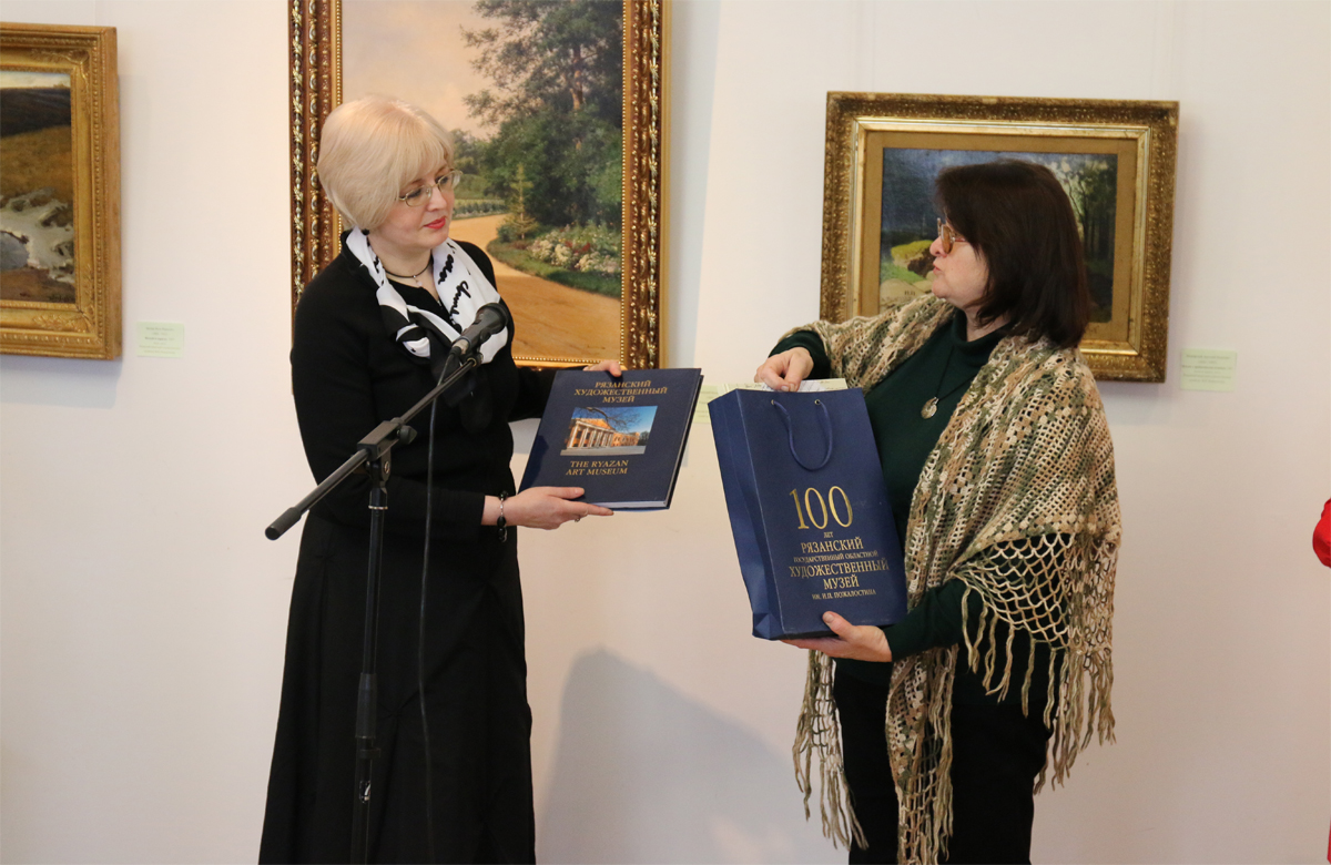 Особую часть выставки составляют произведения классиков отечественного искусства ХХ века: С.В. Герасимова, А.А. Пластова, Н.М. Ромадина и многих других. Воспитанные на лучших традициях русской пейзажной школы, они отличаются глубиной и цельностью восприятия природы. Монументальностью и целостностью отличаются полотна народного художника В.И. Иванова, чье творчество тесно связано с рязанской землей. Запечатленная обобщенными формами и сдержанными цветовыми пятнами природа обретает у него подлинно философское, сравнимое с библейским, звучание.