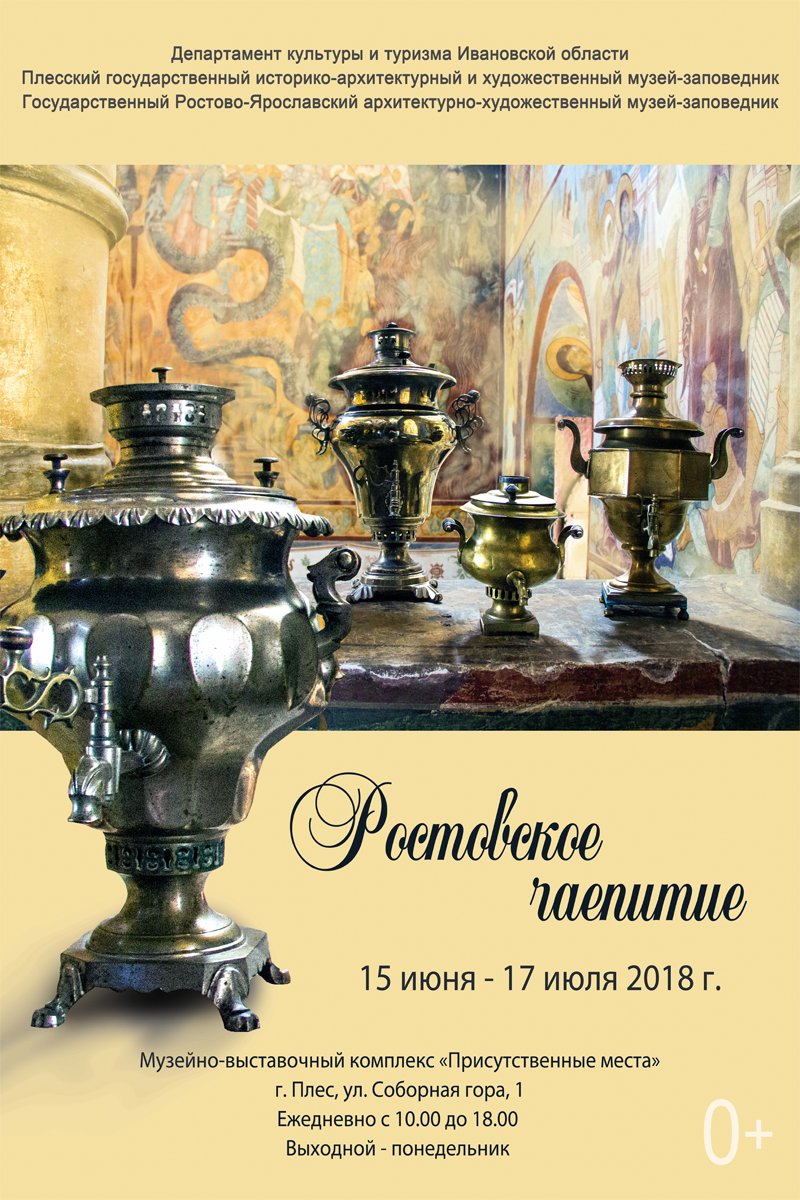 15 июня 2018 г. в 15.00 в Музейно-выставочном комплексе «Присутственные места» откроется передвижная выставка «Ростовское чаепитие», предоставленная Государственным музеем-заповедником «Ростовский Кремль» в рамках министерской программы по организации выставочной деятельности в городах РФ.