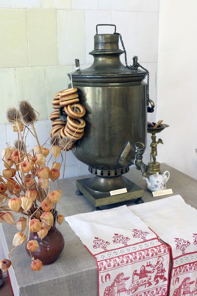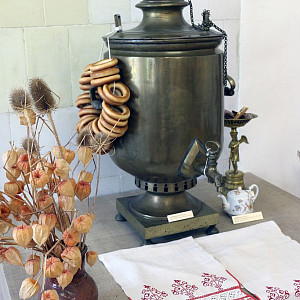 На выставке будет представлена кухонная утварь из собрания музея «Ростовский Кремль»: самовары, квасники, ковши, братины, ендовы, кумганы, пряничные доски. Особое место отведено самоварам, ставшим в России необходимым атрибутом и символом чайной церемонии - от разнообразия форм (банка, кастрюля, коробка) и миниатюрного самовара до огромного трактирного.