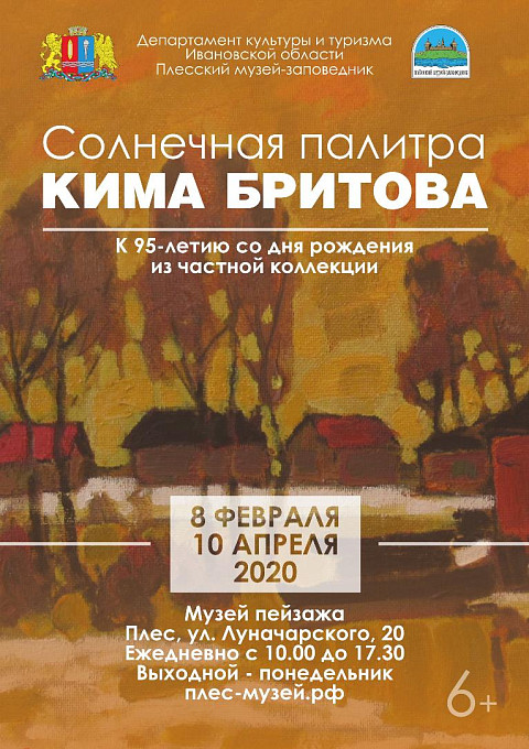 7 февраля 2020 г. в 15.00 в Музее пейзажа состоится торжественное открытие юбилейной выставки «Солнечная палитра Кима Бритова. К 95-летию со дня рождения». Работы для выставки предоставлены дочерью художника Натальей Бритовой.