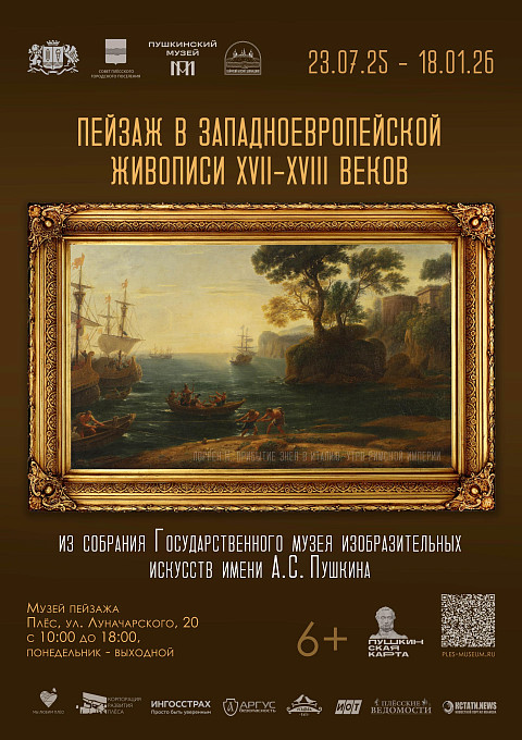 Жители и гости Плёса смогут познакомиться с работами французских мастеров Юбера Робера и Клода Лоррена, итальянских живописцев Джанантонио Гварди и Джованни Бенедетто Кастильоне, известного немецкого художника Якоба Филиппа Хаккерта, одного из создателей «панорамного стиля» голландского пейзажа Якоба Исакса ван Рейсдала и многих других известных европейских мастеров XVII-XVIII веков. Составленная из работ художников разных стран, выставка поможет каждому зрителю создать представление об эволюции пейзажа, национальных особенностях жанра и многообразии его видов.