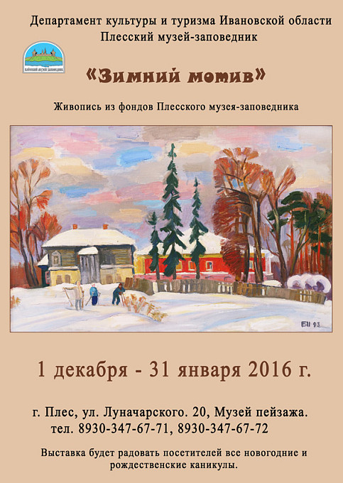 На тематической выставке представлены пейзажные и жанровые работы художников ХХ века, посвященные темам зимы, зимних видов спорта и зимнего отдыха. В экспозиции – картины таких выдающихся художников как А. Корин, А. Грицай, В. Соколов, С. Зверев, В. Федоров, М. Агеев, Д. Трубников, Ф. Модоров, К. Мухин, К. Бритов и др.Тема русской зимы всегда волновала живописцев, обладавших собственным индивидуальным стилем и манерой письма. Однако представители разных художественных школ одинаково точно передают волшебную атмосферу русской зимы. На выставке можно увидеть городские и сельские пейзажи, а также жанровые произведения, составляющие гордость фондового собрания Плесского музея-заповедника.
